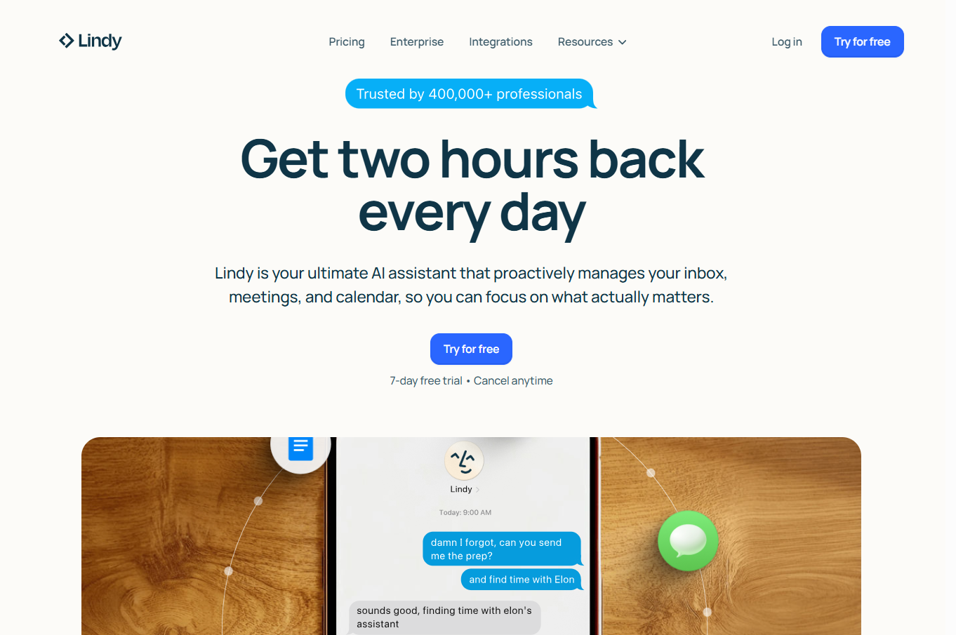 Lindy is an AI employee (agent) who can fulfil such functions as a human assistant can. You can use it to work on your calendar, write an email or screen leads.