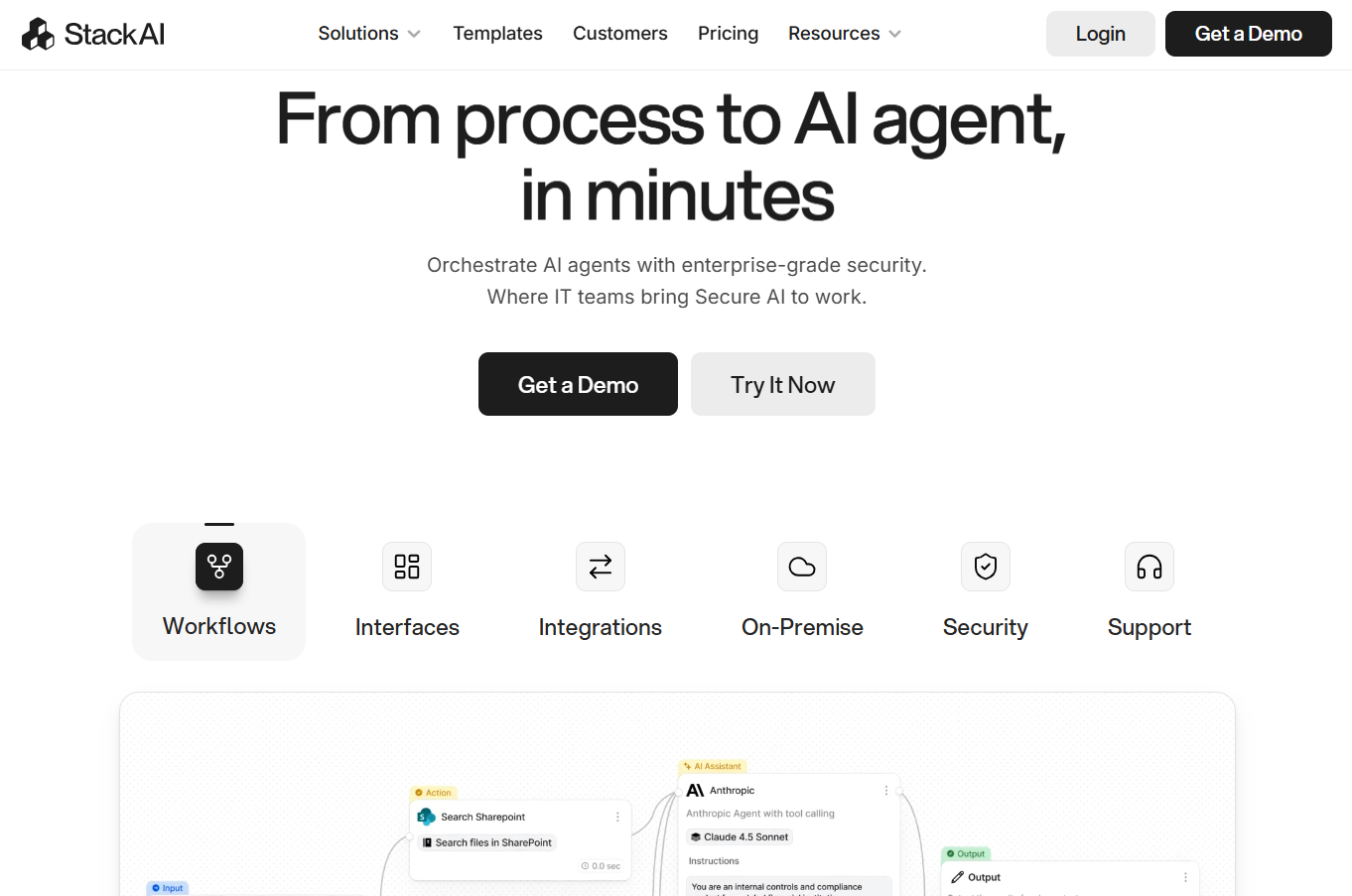 Stack AI is a no-code platform to build and deploy LLM (Large Language Model) applications. It gives you the ability to build AI workflows that can understand your PDFs, point into your database, and answer questions.