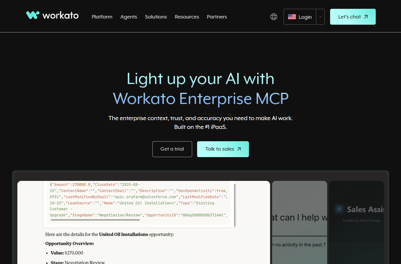 Workato is an enterprise-level automation and integration platform. It is set to be utilised by large companies that must have security, authority, and scale.