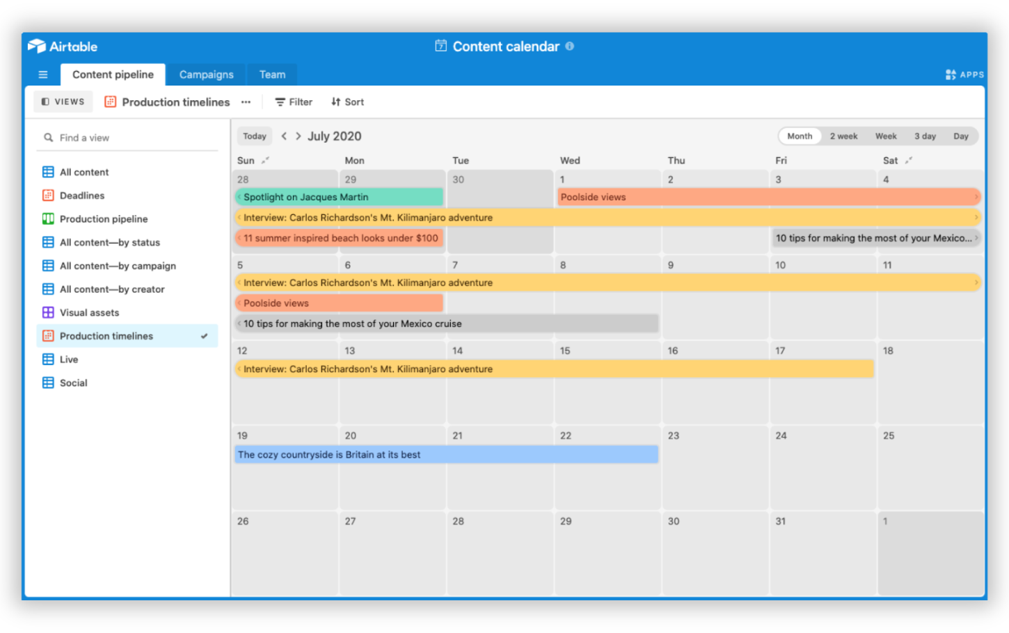 Airtable is a spreadsheet and database hybrid that provides the flexibility and scalability for content planning.