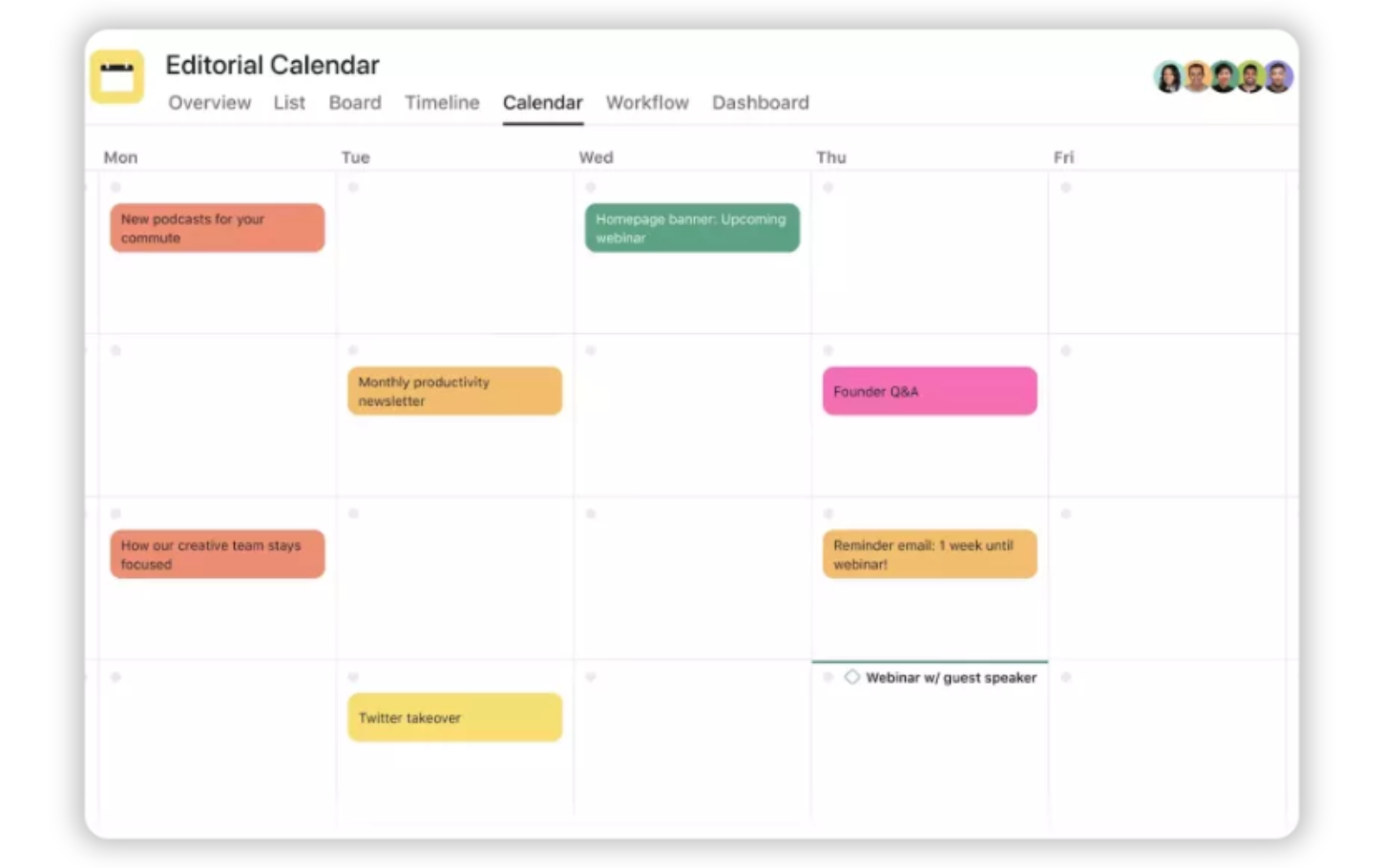 Asana offers a powerful project and deadline tracking system and has templates for content calendars.