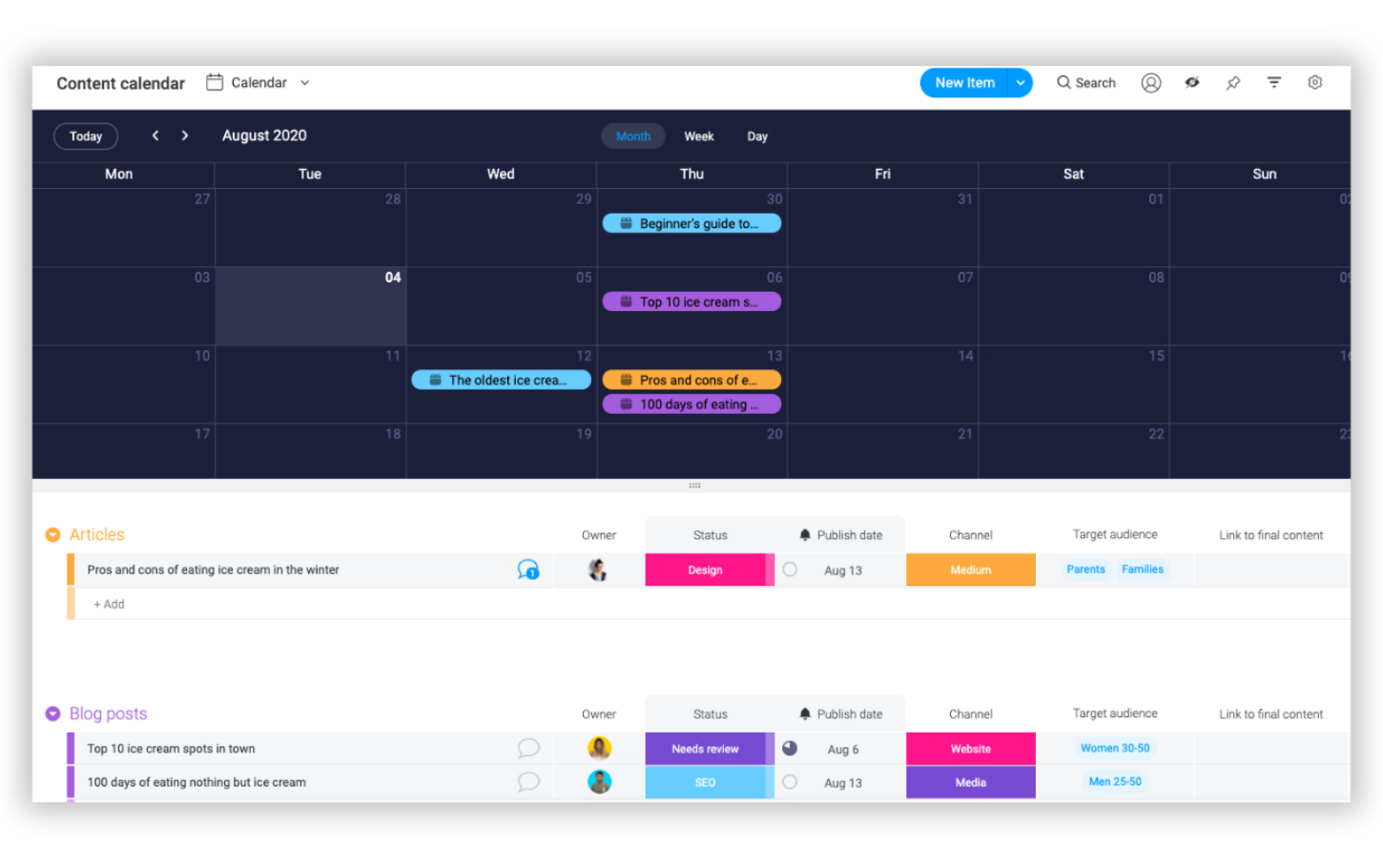 Monday.com is an attractive platform that enables teams to plan campaigns and monitor deadlines with multiple content calendar templates.