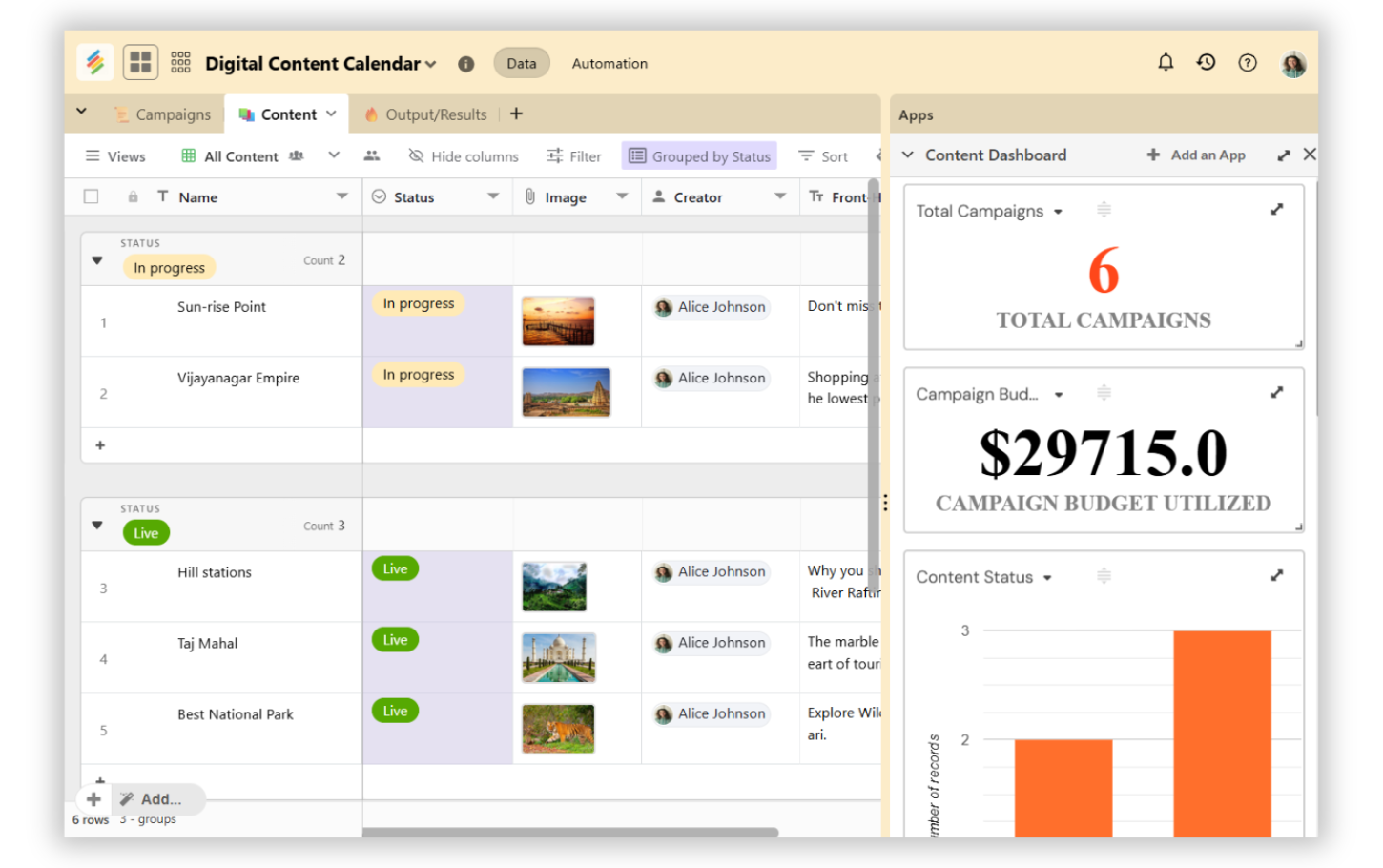Need to be organized and boost your content? Test the content calendar software of Stackby. Regardless of whether you have a team that is taking its first steps or growing exponentially, Stackby has AI automation, powerful templates, and hassle-free teamwork at your fingertips. Join your free trial now and discover the simplicity of content planning!