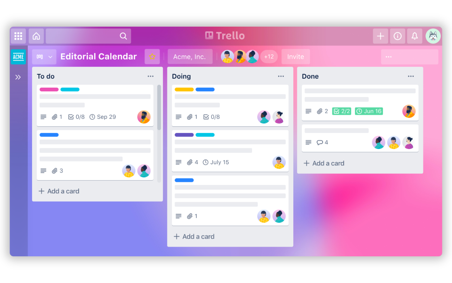 Trello is a visual project management software that is used for simple content calendar requirements with boards, cards, and speedy planning.