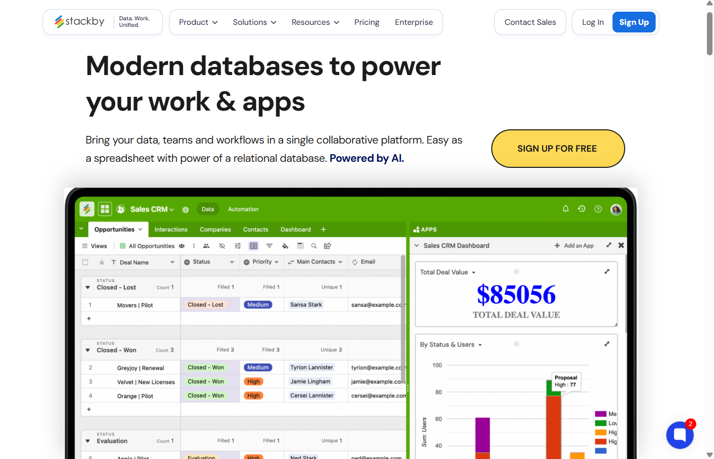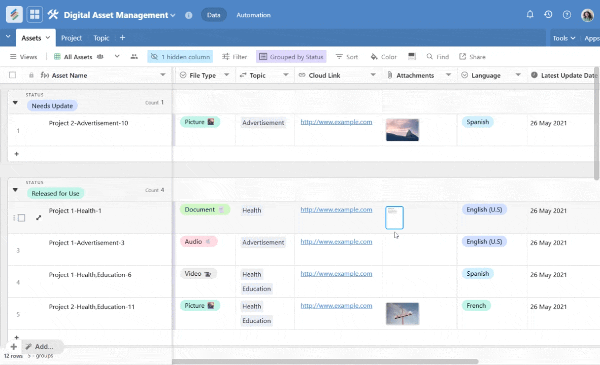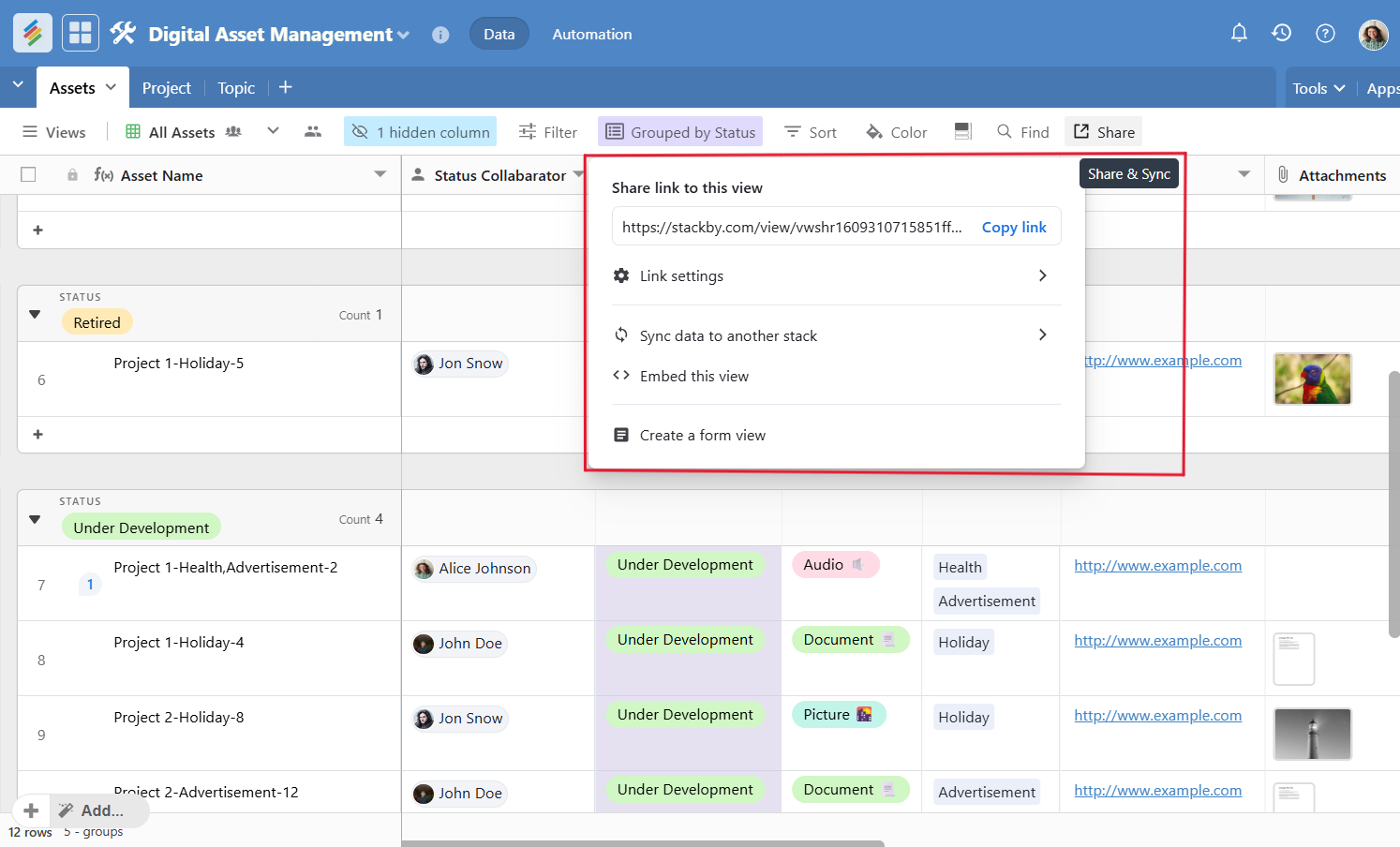 Stackby is known for its flexibility, spreadsheet-like, and no-code interface. It allows users to create catalogs of the content, automate notifications, integrate Google Drive, Dropbox, and Zapier, and manage metadata of any type of file. Stackby, which is a single tool that integrates project tracking with asset management, is available to small and growing teams, but expands as their database grows.