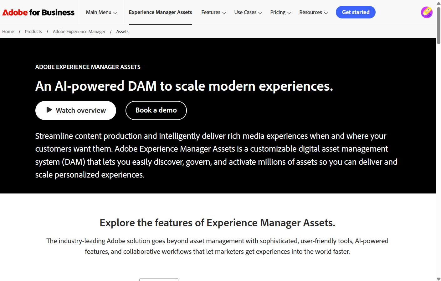 Adobe Experience Manager Assets is known to have an enterprise-level feature set with an AI metadata tagging capability, workflow automation, and integration with the Creative Cloud. Large organizations that have high volumes of assets and need to have a high level of governance and multichannel content delivery are best suited to it.