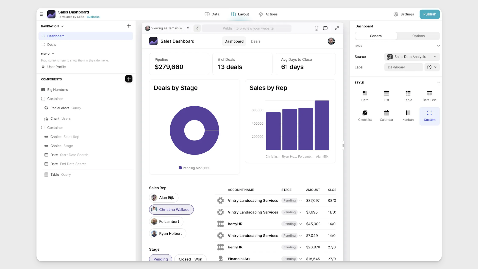 Glide is one of the fastest ways to transform your spreadsheet data into an app. It prefers simplicity and focuses on interface design. It’s suitable for building internal applications that need to go live quickly, and are used by non-engineers.