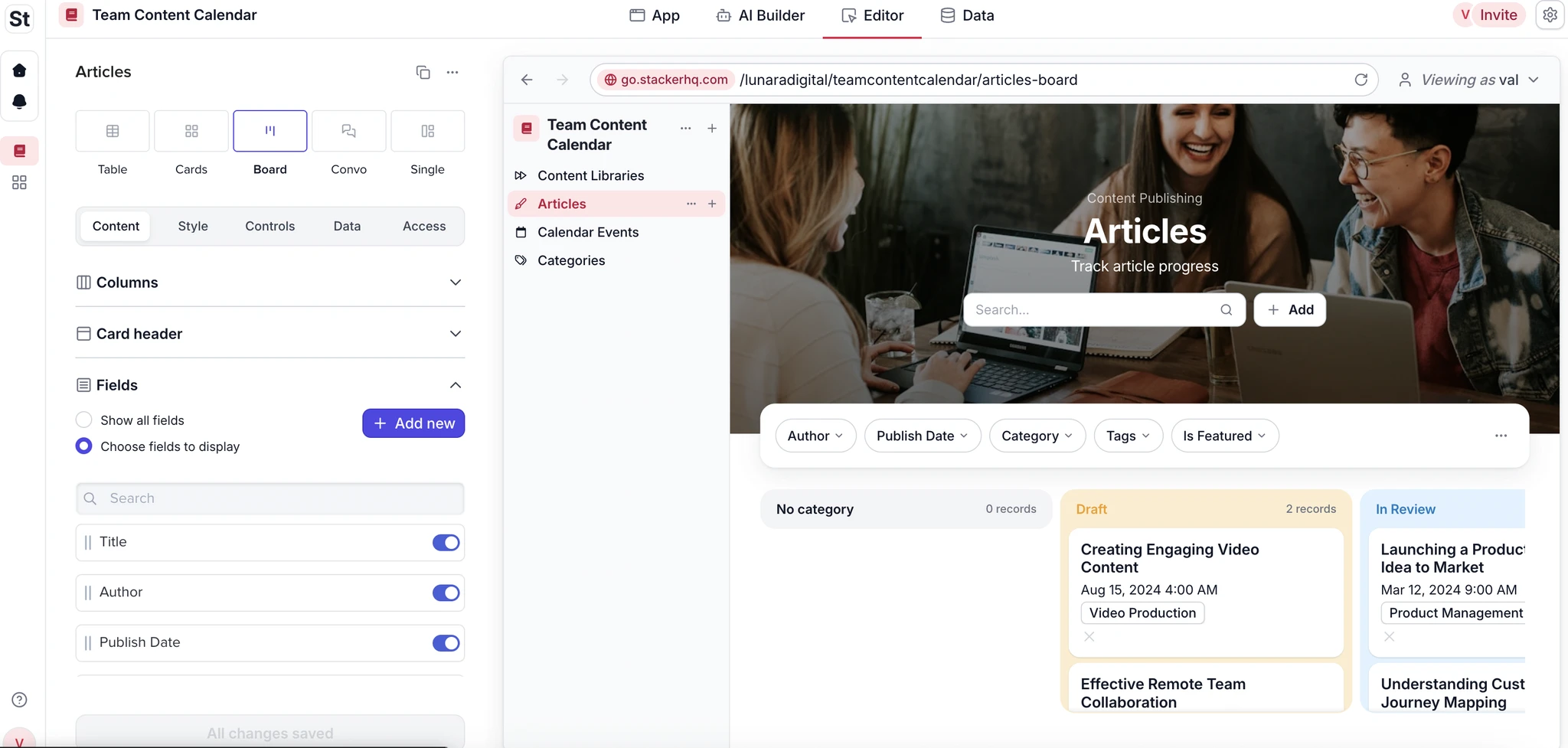 Stacker is closest to Softr in terms of use case. It focuses on turning existing data into structured portals with strong access control. If your primary need is to create client-facing apps or internal portals with controlled visibility, Stacker does that well.