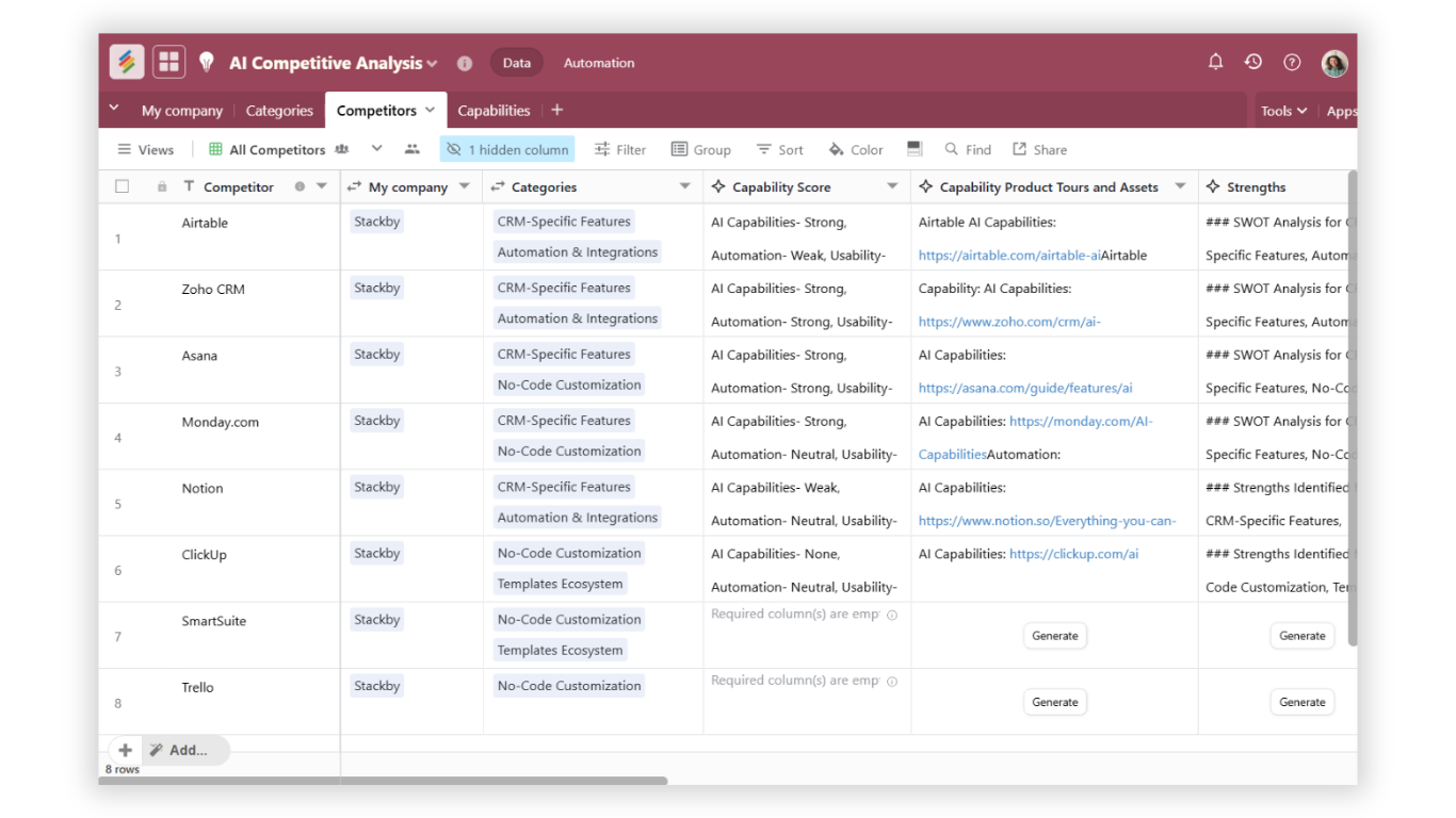 - Market Research Information: From competitor analysis to customer surveys, Stackby’s API and changeable templating systems bring in the research results enabling you to detect trends and market movement.