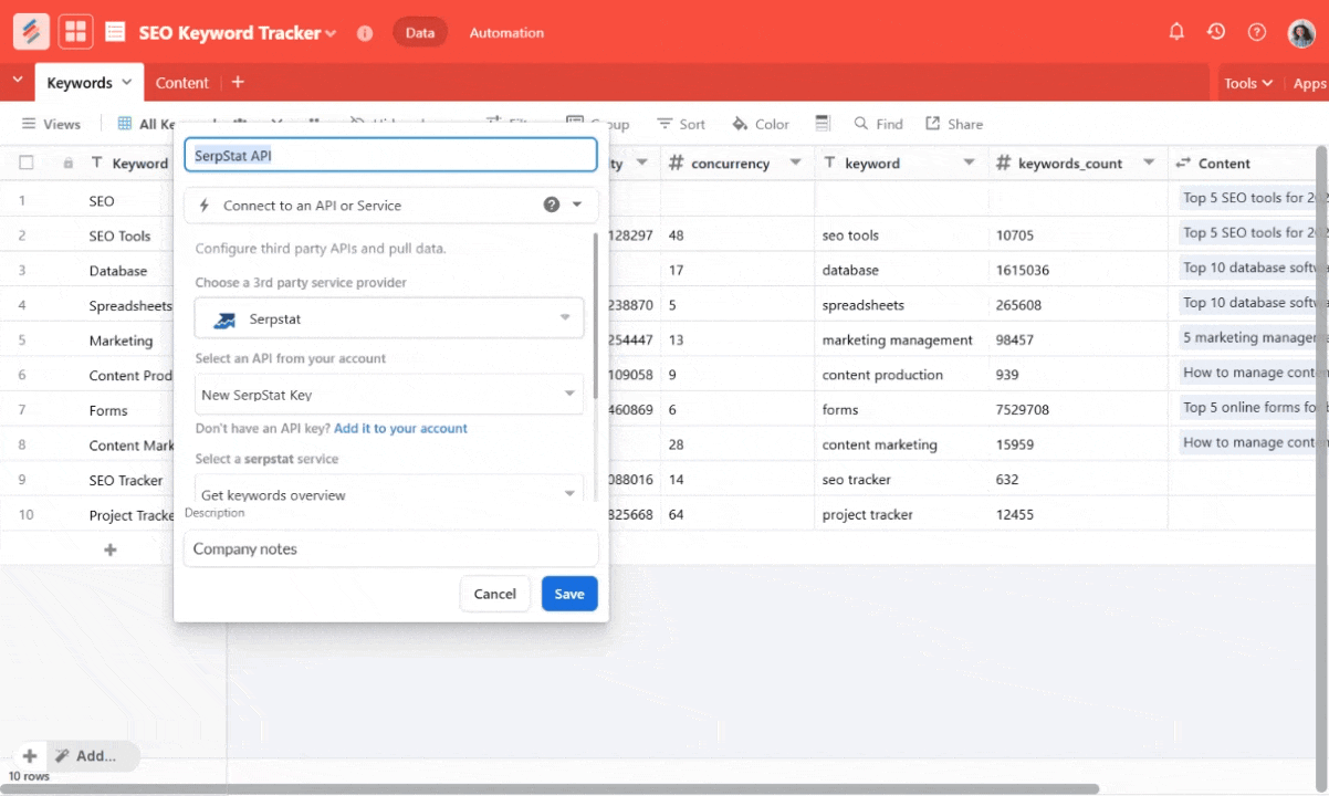 Choose a platform that suits you and allows automation, tracking and analysis within a short time. Using Stackby, any data can be updated automatically in real-time with connections to 3rd party applications such as Google Analytics, Facebook Ads, and Mailchimp.