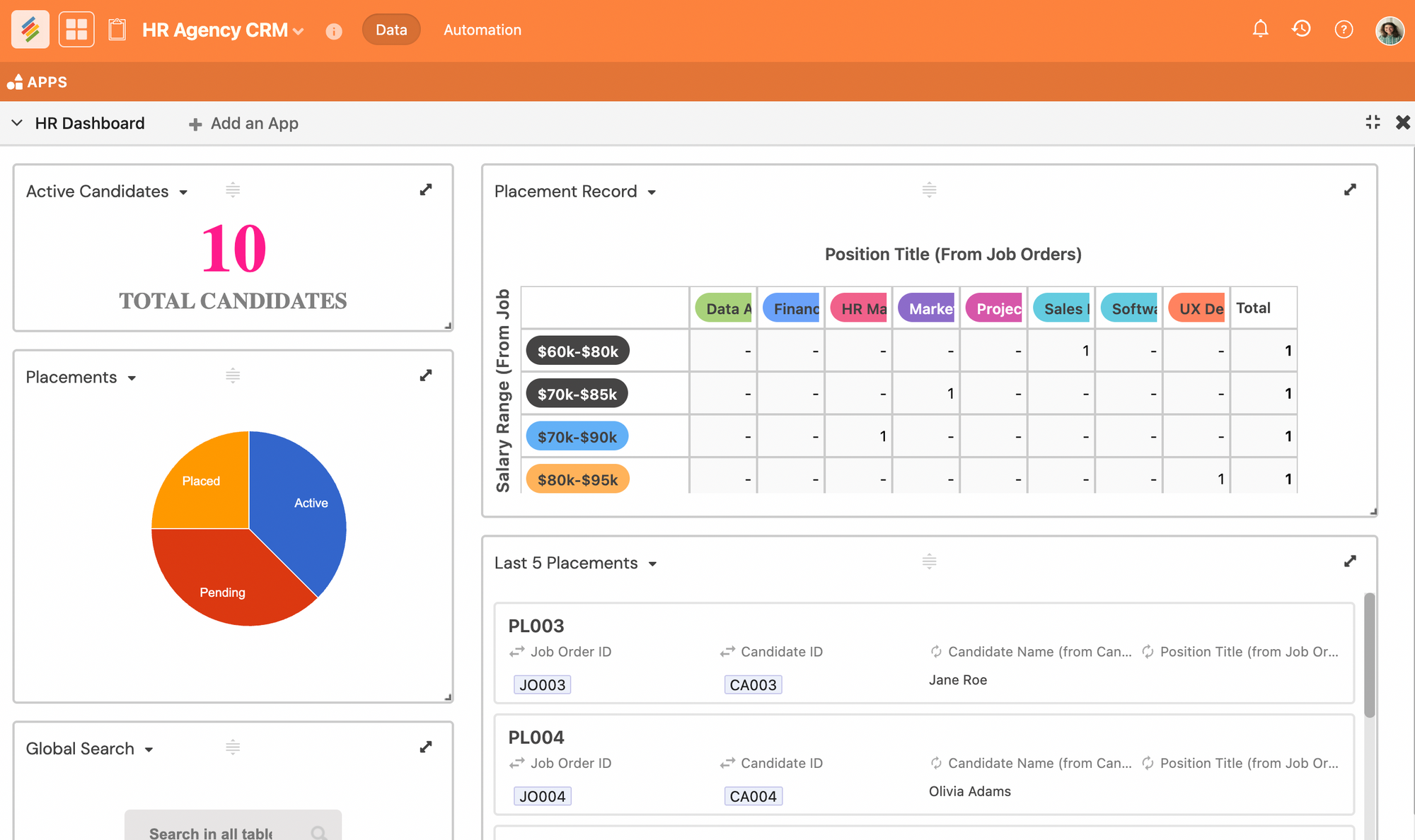 Step 7: Use 10+ built-in dashboard apps like charts, pivot tables, goal tracker, or summary, to measure KPIs: throughput, error rate, average time to close and modify as needed.