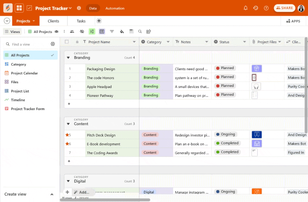 Step 2: Within Stackby, you can create your own tables, or import existing data, assign the appropriate owners, statuses, and deadlines.