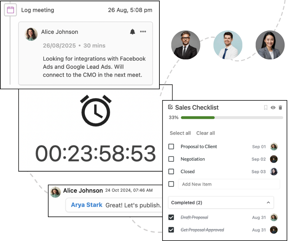 Add activity logs, checklists, reminders and even two way sync emails on each record like a CRM + custom project management tool.