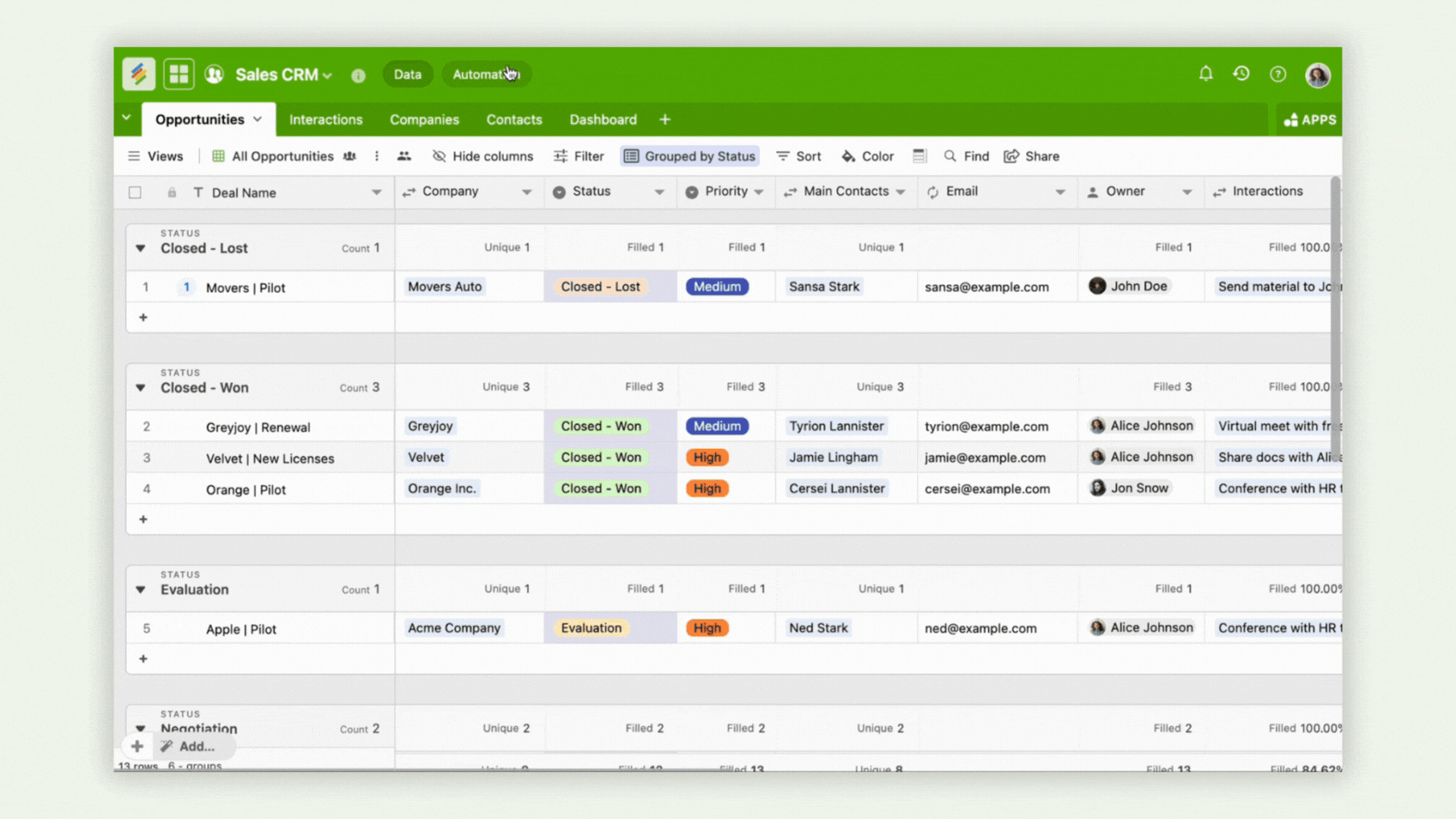 Visualize your entire pipeline with drag-and-drop simplicity. Never lose sight of a deal and close faster with clarity.